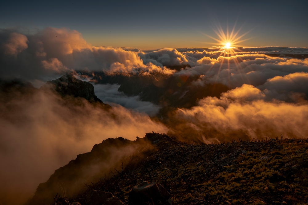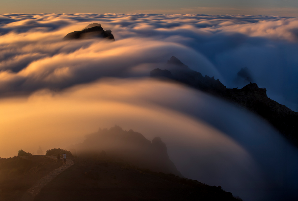 Druga fotografia sponad chmur pochodzi z najwyższego szczytu – Pico Ruivo. Tu trzeba wejść na własnych nogach. I znowu – same mgły i wydawało się, że plener się nie uda. Przed samym zachodem jednak rozstąpiły się oferując kilka minut pięknego spektaklu: