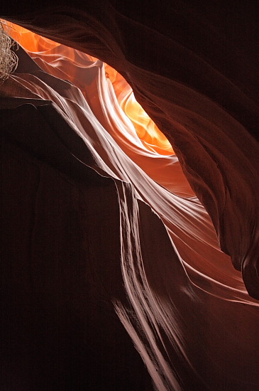Antelope Canyon to miejsce znane z albumów fotograficznych. Leży na terenie Navajo Tribal Lands, czyli rezerwatu Nawahów, który ponoć jest większy od Czech. Można go zobaczyć wyłącznie wykupując drogą wycieczkę u Native Americans czyli Indian (nie lubią tego określenia). W siedzibie Antelope Cośtam Tours za biurkiem stała Sprytna Lisica, która wszelkie próby negocjacji ceny ucinała w zarodku. Wsiedliśmy na otwartą pakę turystycznego jeepa, czekając co będzie dalej. Po chwili pojawił się Rączy Mustang, który wskoczył za kierownicę i ruszył z fasonem. Ciekawostką były pasy bezpieczeństwa: jeden na dwie osoby. Na szczęście wystarczyły, chociaż przechyły na zakrętach stanowiły dla nich poważne wyzwanie. Wkrótce asfalt zamienił się w piach, po którym dojechaliśmy do celu. Okazało się, że Rączy Mustang jest też przewodnikiem. Jego głównym zajęciem podczas marszu po kanionie było pokazywanie najlepszych miejsc zdjęciowych (“Stand here!, Camera!, Follow!”). Opowieści za bardzo nie snuł, więc trzeba było doczytać samemu. To fantastyczne dzieło erozji zostało odkryte niecałe sto lat temu przez indiańską (natywnoamerykańską) dziewczynkę, która zapuściła się tu pasąc krowy. Dla Nawahów jest świętym miejscem (co nie przeszkadza im nieźle na nim zarabiać). W biurze Antelope Cośtam Tours można było przeczytać o zakazie nagiego fotografowania się w kanionie i o tym, że złamanie zakazu grozi osądzeniem według tradycji plemiennych (wolałem nie sprawdzać co to znaczy 😉 ).