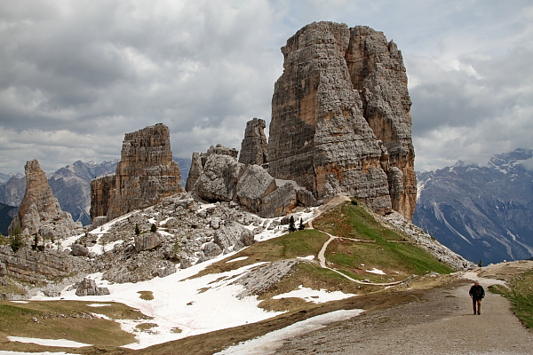 Potem wjechaliśmy wyciągiem krzesełkowym do pięknego gniazda górskiego Cinque Torri (Pięć Wież). Aż trudno uwierzyć, że w czasie I wojny światowej Włosi toczyli w tym terenie ciężkie walki z Austriakami (animozje przetrwały do dzisiaj):