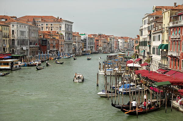 … a także małe kanaliki, w których tłoczyły się gondole wypełnione turystami. Można wykupić sobie rejs konwencjonalny albo – o zgrozo – ze śpiewem gondoliera. Słyszałem już kilka takich popisów wokalnych i – z całym szacunkiem – chyba zrobiłbym to lepiej 😉