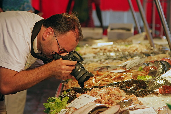 Ostatniego dnia zajrzeliśmy na targ rybny w okolicach mostu Rialto. Piotr, nasz capo di tutti capi wkręcił się w fotografowanie krewetek: