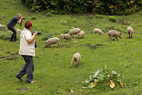 Już wkrótce pełniejsza relacja z wyprawy. A na zdjęciu zaimprowizowana sesja na trasie z Mestii do Uszguli, w głębokich ostępach Kaukazu. Wcale nie planowaliśmy tu stanąć, ale kiedy pojawiły się stada ciekawskich świnek, krów i kóz z wielkimi rogami, nie było innego wyjścia…