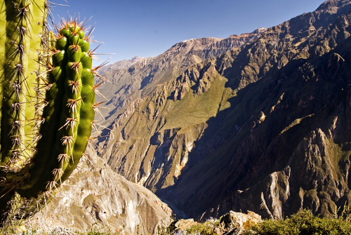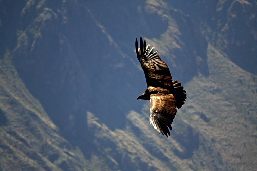 przeczytałem książkę Wiktora Ostrowskiego „Wyżej niż kondory”, byłem przekonany, że trzeba wspiąć się na Mercedario albo coś w tym guście, żeby zobaczyć kondora z pułapu wyższego niż przezeń osiągany. Okazuje się jednak, że nie jest to aż tak trudne: wystarczy znaleźć się na punkcie widokowym Cruz del Condor nad kanionem Colca. Właściwie to jest to zupełnie łatwe, o czym świadczą tłumy turystów okupujących to miejsce każdego dnia.